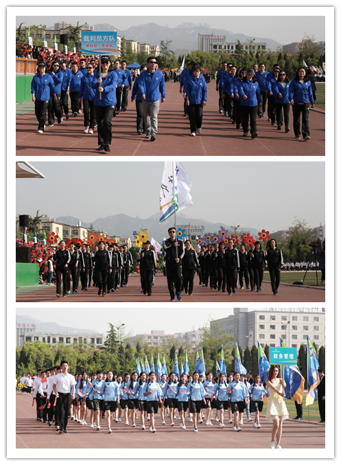 开幕式上,伴随着雄壮有力的《运动员进行曲》,各方队迈着整齐矫健的步伐、喊着铿锵有力的口号,精神抖擞、意气昂扬地走过主席台,接受学院领导和全院师生的检阅。