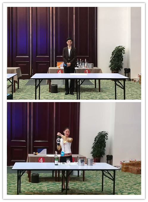 本次大赛首度采用全国西餐宴会服务赛项的比赛模式,吸引了来自全省14个地市的23支赛队44位选手。比赛分为西餐宴会摆台、英语台面主题介绍及知识问答、鸡尾酒调制三个环节。鸡尾酒调制比赛环节是我院学生三个参赛环节中表现最为突出的,分别获得全省第一名、第二名的好成绩;其中孟娣的自创鸡尾酒配方是鸡尾酒裁判长、青岛西湖花园酒店副总经理时靖在赛项点评会上表扬的两个优秀配方之一。