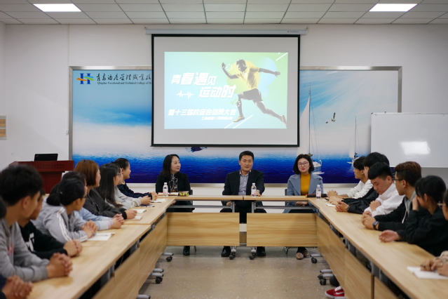 本网讯(工商管理学院 孟鹏)在学院第十三届运动会即将拉开帷幕之际,4月19日晚,院长姜玉鹏走进他联系的2017级物流管理2班,参加“青春遇见运动时暨第十三届校运会动员会”主题班会。工商管理学院党总支书记曲萌,辅导员刘雪松和2017级物流管理2班全体同学参加。