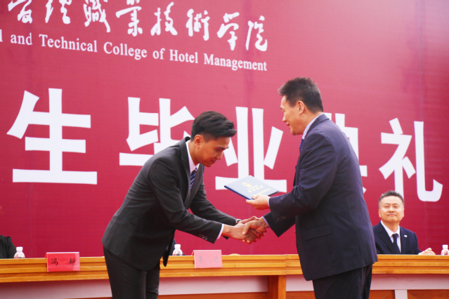 洲际酒店集团山东、河南区域区域总经理李子华先生,作为企业代表致辞,感恩是人生的大智慧,要时刻怀有一颗感恩的心;客观环境总是不完美的,这是一个简单的事实;天下古今之庸人,皆以一惰字致败。祝愿毕业生在自己未来的人生中,走对路,走好路,都能够收获充实而有意义的人生。