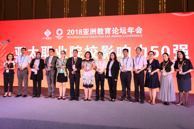 2018亚洲教育论坛年会由中国高等教育学会、四川省教育厅、成都市人民政府、亚洲教育北京论坛共同主办,共有来自26个国家和地区的1000多位专家、学者参加了论坛,主题是“构建人类命运共同体,共筑亚洲教育美好明天”。本次评选旨在表彰在亚太教育事业中有突出贡献和影响力的职业院校,同时推动并深化中国职业院校与亚太地区各国及中东欧地区国家之间在职业教育领域的交流与合作。共有36所中国院校和14所外国院校入围此次评选,这是亚洲教育论坛15年来第一次邀请职业院校参加评奖。