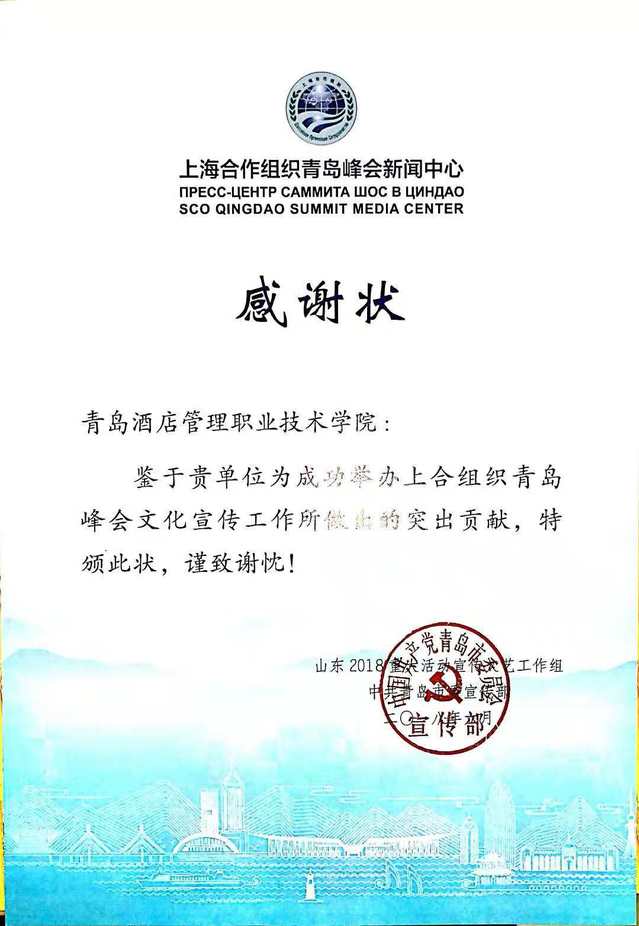 本网讯(旅游与酒店管理学院 白星宇)10月7日,中共青岛市委宣传部为上合峰会期间在青岛峰会新闻中心参加志愿服务的同学送来了感谢信,高度赞誉必赢线路检测3003no1为成功举办上合组织青岛峰会文化宣传工作所做出的突出贡献。