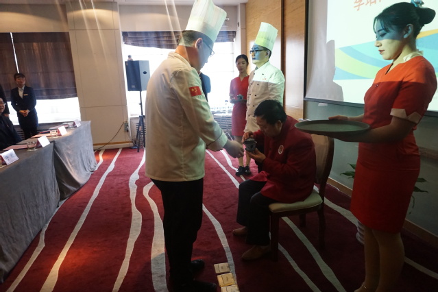 于敏代表学院讲话,指出此次拜师活动是学院传承烹饪专业的拜师传统,与青年教师培养工程相结合,是学院优质校建设中师资培养的一种创新模式。希望师傅、徒弟能够团结一致、凝聚力量、贯彻落实,取得良好的效果,真正将师徒德艺传承成果转化到教育教学上,培养出更多的烹饪行业精英,为我院职业教育创设典范。宫恩龙代表学院向李培雨大师赠送收徒纪念礼物。