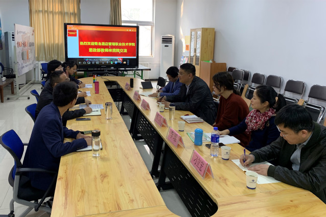 3月18日上午,思政部部分教师到北京财贸职业学院考察学习。北京财贸职业学院创建于1958年,是国家示范性高等职业院校,该院马克思主义学院成立于2016年,是北京市第一家高职高专马院,也是教育部示范马克思主义学院。马克思主义学院副院长莫俊峰,办公室主任徐杨,骨干教师王莉莉、李萌、李杰伟等热情接待了我院一行,并就课程考核改革、信息化教学实践、实践教学的开展及思政课教师素质水平提升等工作与我院思政部教师做了深入交流与探讨。