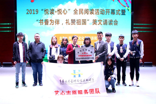 艺术学院“艺心”志愿者团队全程服务2019“悦读•悦心”李沧区全民阅读活动开幕式暨“书香为伴,礼赞祖国”美文诵读会,以尽职尽责的工作态度、高度负责的责任感和专业的服务质量赢得了主办单位和到场嘉宾的认可。朗诵会上,我院学生代表现场朗诵了中外名家经典作品,以实际行动为“世界读书日”贡献青春力量。