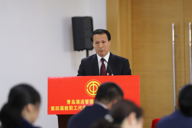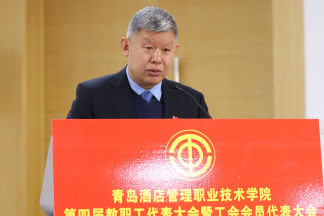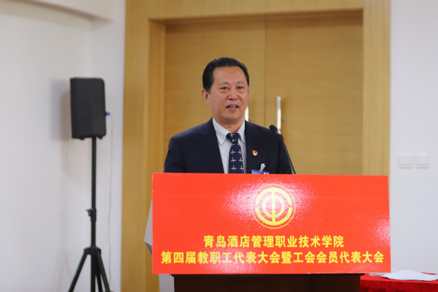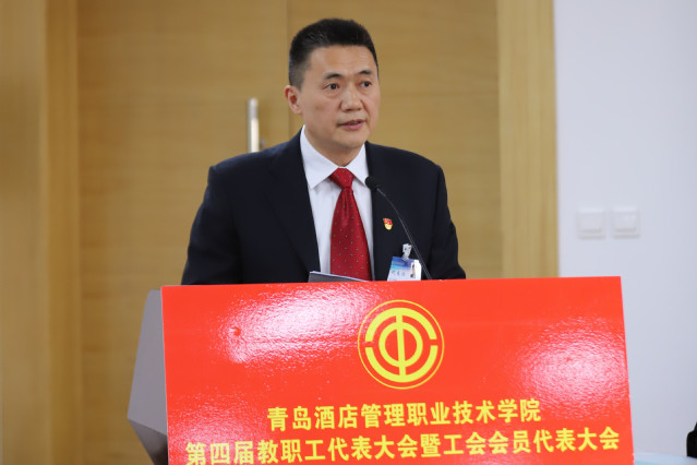 姜玉鹏向大会作了题为《聚力内涵建设 坚持特色办学 争创双高计划为建设国内一流、国际知名的酒店业全科型职业教育品牌而努力奋斗》的工作报告(以下简称《学院工作报告》)。《学院工作报告》分为第三届“双代会”以来的工作回顾、当前职业教育发展的形势分析和今后五年的奋斗目标与主要任务三部分。《学院工作报告》指出,第三届“双代会”以来,全院师生员工解放思想、同心同向、改革创新、奋发有为,学院抢抓加快发展现代职业教育的历史机遇,各项工作都有了长足进展,事业迈上了新的台阶。《学院工作报告》分析了当前职业教育发展形势,提出今后五年,要加强管理体制建设,巩固教学中心地位,促进师资结构优化,坚持立德树人根本任务,加强和改进党的建设,把学院办成国内一流、国际知名的酒店业全科型职业教育品牌,打造中国酒店业职业化人才的摇篮,让我们的学生深受社会欢迎,让我们的学院广受行业推崇。