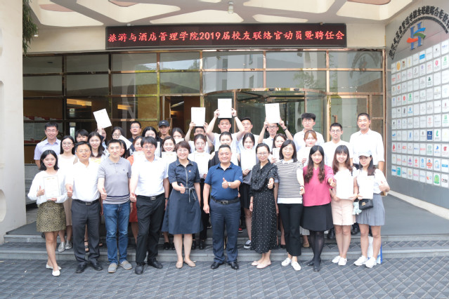 本网讯(旅游与酒店管理学院 刘云飞)为推动学院校友会建设,加强2019届校友的联络,6月30日下午,旅游与酒店管理学院召开2019届校友联络官动员暨聘任会。学院副院长刁洪斌、旅游与酒店管理学院党总支副书记徐莉、32名校友联络官和相关人员参加仪式。