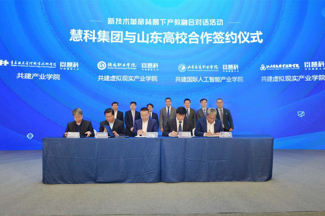 会上,山东省教育厅与慧科集团签署战略合作协议,同时慧科与包括我院在内的12所山东本专科高校签订虚拟现实产业学院、人工智能产业学院、视觉营销产业学院、大数据产业学院等合作协议,培养产业所需专业技术技能人才。来自阿里巴巴、百度、腾讯、华为等战略性新兴产业领域头部企业嘉宾在产教融合方面分别进行了主题分享。