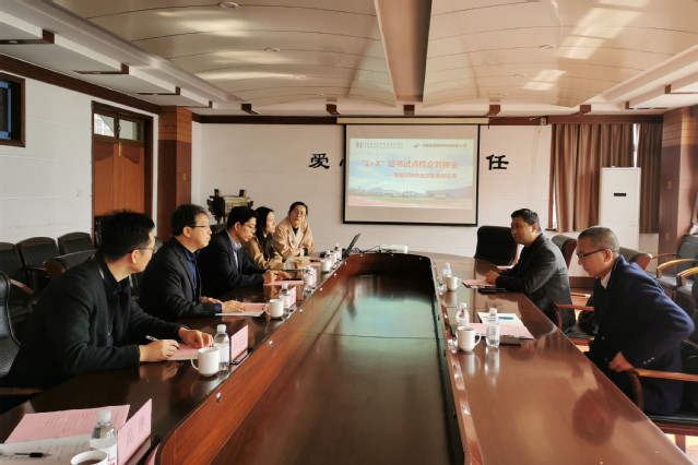 会上,宫恩龙对艾平一行表示热烈欢迎,并向客人介绍了学院的基本概况,重点介绍了财会商贸专业的办学历史、师资队伍与课程建设等情况。唐文君介绍了我院“1+X”证书试点项目开展情况。艾平详细介绍了中联集团公司基本情况,结合“1+X”证书项目对职业教育的现状进行了深入的分析,重点对财会金融专业的行业发展和人才培养方向提出了前瞻性的见解和系统化的方案构想。