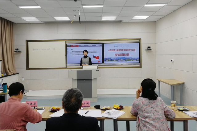 决赛现场,参赛选手结合PPT、板书、信息化工具、教具等多种教学手段进行了课堂授课。教学内容重点突出,条理清晰,环节完整,恰当融入课程思政元素,贯穿“以学生为中心”;教学教态流畅自然,成熟稳重,活泼大方,富有感染力;教学组织合理,注重启发式、互动式、问题导向式的多元教学方法。经过专家评委现场评审,共评出一等奖2人,二等奖4人,三等奖7人,并从决赛选手中选拔出参加山东省第七届“超星杯”高校青年教师教学比赛的推荐选手2人,抽取选手6人。他们其中的4人将于今年12月份代表学校青年教师参加山东省第七届“超星杯”高校青年教师教学比赛的角逐。