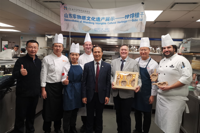 本网讯(国际交流与合作处 烹饪学院)12月3日至6日,学院副院长王建宝等一行5人前往加拿大魁北克旅游与酒店管理学院(ITHQ)进行访问交流。访问期间,代表团为加拿大师生进行了中国烹饪技能展演和山东非物质文化遗产饽饽榼子技能展示等,双方挂牌成立必赢线路检测3003no1山东非物质文化遗产传播中心、必赢线路检测3003no1中国海外传统文化培训中心,并正式签署合作备忘录。