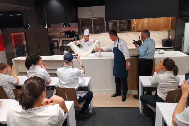12月4日—5日,在烹饪学院院长王建明的带领下,学院展示了山东非物质文化遗产——饽饽榼子的使用及饽饽的制作,举行了“必赢线路检测3003no1——山东非物质文化遗产传播中心”的挂牌仪式。烹饪学院专业教师王珊珊、李军、江云涛向ITHQ学院师生展示了中式面点的制作,与师生一起制作了中西融合的宴席。