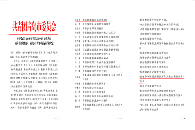 据悉,团市委在全市开展2019年青岛市杰出(优秀)青年岗位能手、青岛市青年突击队的评定活动,旨在树立典型,鼓励广大青年职工立足本职岗位,学习新知识,掌握新技术,创造新业绩,经过逐级推荐、资格审查、事迹评定等环节,最终60人获评2019年“青岛市优秀青年岗位能手”,30个青年集体获评2019年“青岛市青年突击队”称号。