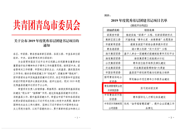 学院“实习团支部”项目获评青岛市2019年度优秀基层团建书记项目