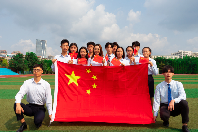 心中有国旗,青春勇担当。酒店管理学院通过礼赞国旗的方式对学生进行爱国教育,为学生提供抒发爱国情怀的窗口,向新中国成立71周年献上同学们的深情祝福,展现了新时代大学生积极向上的精神风貌和对祖国的无限热爱。