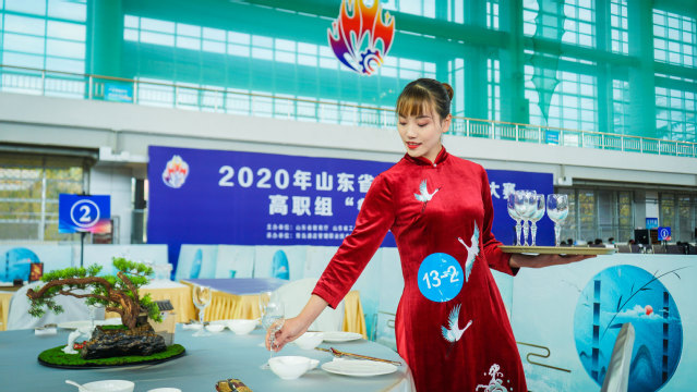 本网讯(党委宣传统战部 酒店管理学院)1117-20日,初冬再相聚,2020年山东省职业院校技能大赛在学院体育馆举行,共有来自全省各地26支队伍同台竞技、共展专业魅力。为期四天的赛事,选手们沉着应战,用精湛的技艺和风采,展示了省内高职院校餐厅服务的最高水平。
