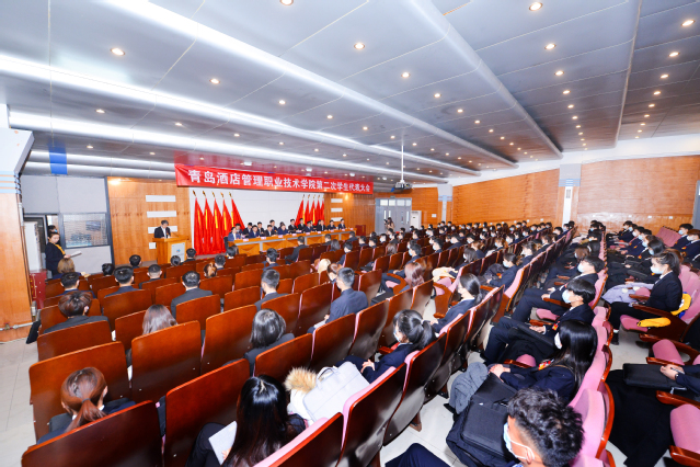 本网讯(团委 孙梦男)12月20日上午,学院第二次学生代表大会在学术报告厅召开,学院党委委员、副院长宫恩龙出席大会开幕式并致辞。团委书记李柯、各二级学院党总支书记、团总支书记、学生会指导老师以及来自全校的142名学生代表参加会议。