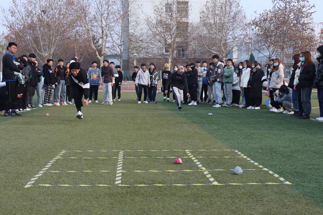 12月12日下午,艺术学院在学院足球场举行了趣味运动会。艺术学院团总支书记邵常恩带领同学们一起参与了活动,趣味运动会氛围“绑腿疾走”“快乐传递”“欢乐踩气球”“井字棋”等项目,同学们玩出了精彩,赛出了新意,表现出了极高的热情,在活动中体验参与的快乐,在比赛中享受胜利的喜悦。趣味运动会锻炼的是身体,激活的是生命,收获的是笑脸,学生们走下网络、走出宿舍、走向操场,既锻炼了身体,又增进了彼此的友谊。
