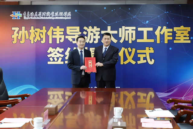 孙树伟表示,十分荣幸受聘为学院现代产业导师,将依托工作室广泛开展工作,秉承工匠精神,传承导游技能,积极在学院师资队伍建设、线上教学资源开发等方面落地落实合作项目,为学院“双高计划”建设工作和高质量发展贡献力量。