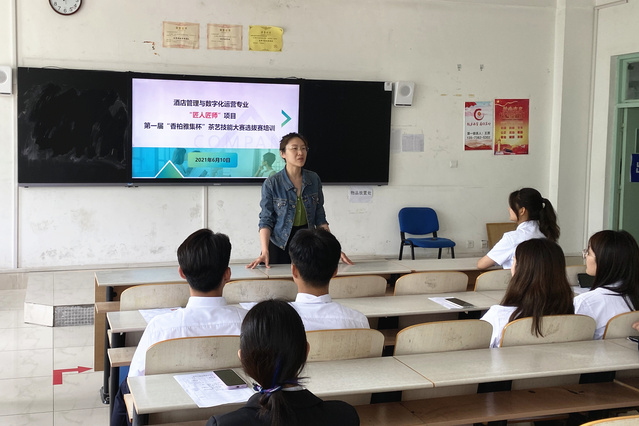 6月10日,酒店管理学院召开“匠人匠师”培育工程项目说明会暨茶艺大赛选拔赛培训,项目负责老师向现场学生介绍“匠人匠师”培育工程项目,学生对项目表现出浓厚的兴趣,对该工程项目有了初步了解。说明会后,项目负责老师言传身教,对选手的仪容仪表、礼仪规范、茶具摆放、冲泡程序、冲后整理等环节进行了细致指导。