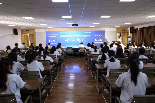 青岛市邮政管理局市场监管处处长杨利军、办公室主任任天舒,顺丰集团鲁东区公共事业部、经营管理部、人力资源部负责人,学院教务处处长于进亮、工商管理学院副院长潘华南及邮政快递运营管理专业全体师生参加会议。仪式由工商管理学院党总支书记郭学道主持。