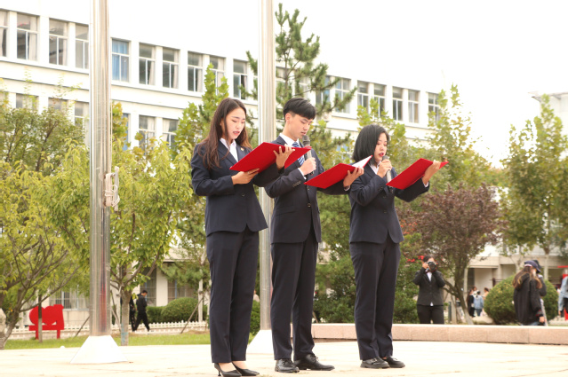 全体师生共同唱响《歌唱祖国》,在慷慨激昂的歌声、热烈动人的氛围中进一步深化爱国之情、爱党之情。作为新时代的青年学生,同学们立志接过上一代的接力棒,牢记责任使命,勇于担当作为,做新时代砥砺前行的奋进者。