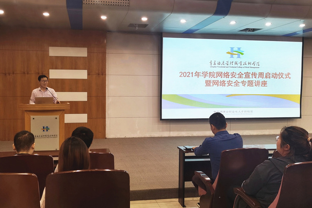 本网讯(教育信息中心 张文昌)10月11日,2021年学院网络安全宣传周启动仪式暨网络安全专题讲座在学术报告厅举行,学院副院长张宗国参加仪式。
