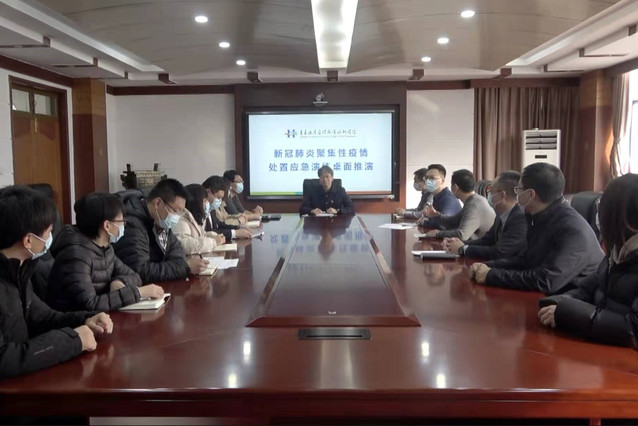 本网讯(学生工作处 王正强)1月14日下午,学院副院长宫恩龙在行政楼二楼会议室主持召开2022年新冠肺炎聚集性疫情处置应急演练桌面推演会,对预案启动、流调转运、疫点防控、症状检测、核酸监测、舆情处置等6个环节12个问题进行桌面推演。