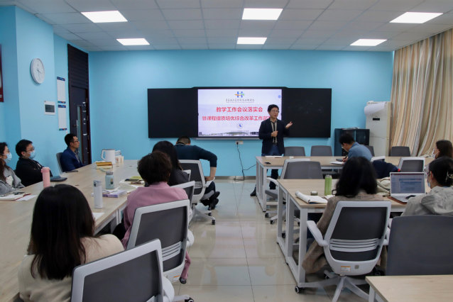 会上,教务处处长于进亮从课程标准体系、教学模式、课程资源、课程评价等四个维度对学校课程提质培优综合改革实施方案进行了深度解读。马克思主义学院副院长李瑶作了题为“课程思政在‘提质培优’教学改革的应用与思考”专题报告,并和与会老师就财经类专业课程思政实施路径和方法进行了研讨。会计学院副院长刘进涛主持会议并结合学校教学工作会议精神安排部署会计学院2022年度教学重点工作。