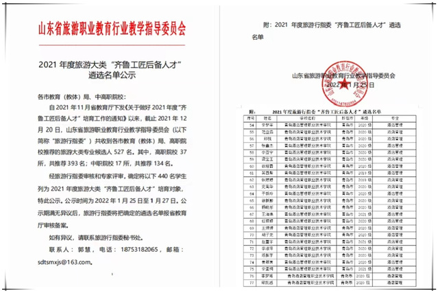 本网讯(酒店管理学院 纪小川)近日,山东省旅游职业教育行业教学指导委员会公示了2021年度旅游大类“齐鲁工匠后备人才”培育对象遴选名单,全省共有440名学生被列为培育对象,必赢官网酒店管理与数字化运营专业24名学生在列。