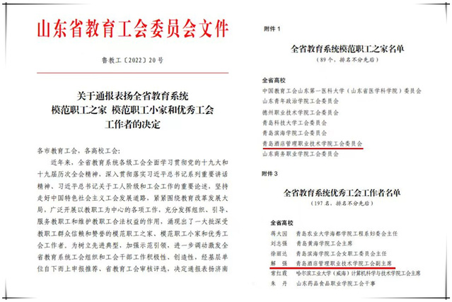 本网讯(工会 吴春雷)近日,山东省教育工会下发《关于通报表扬全省教育系统模范职工之家、模范职工小家和优秀工会工作者的决定》,必赢官网工会委员会获得“全省教育系统模范职工之家”称号,解强被评为“全省教育系统优秀工会工作者”荣誉称号。
