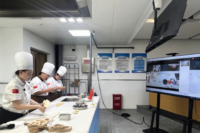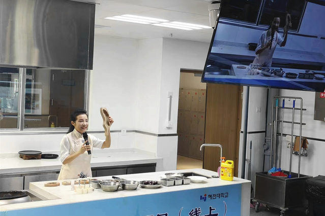 展演中,必赢官网艺术学院院长朱广丽带领泰国学生们走进5G虚拟数字展馆,“云游”了“饽饽榼子博物馆”,了解了非物质文化遗产饽饽榼子的历史渊源、制作过程以及图案寓意;烹饪学院邢文君老师演示了广式月饼和酥皮月饼制作的全过程,让学生们领略了中国饮食文化的魅力。最后,在传统文化与技能的巧妙融合中,老师们现场解答了泰国学生提出的问题。
