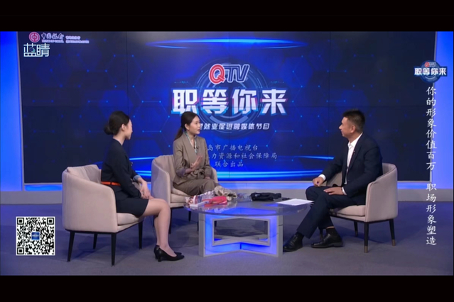 青岛广播电视台QTV-1蓝睛频道《职等你来》栏目邀请酒店管理学院教师录制了《职业形象塑造》《职场礼仪讲解》两期节目。节目围绕职场中正装色彩、服装款式及商务礼仪和接待礼仪等进行了深度交流访谈,获得较高社会认可。目前,该节目已在蓝睛网、“爱青岛”、青岛广播电视台QTV-1频道《今日》栏目陆续播出。