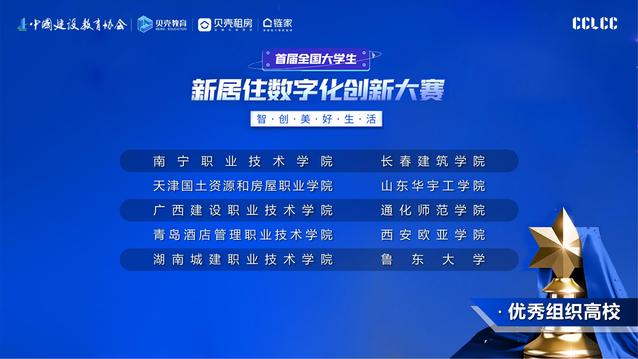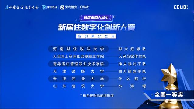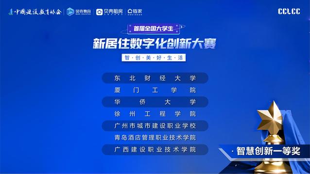 首届全国大学生新居住数字化创新大赛由中国建设教育协会联合贝壳共同举办。大赛共有来自全国70多个城市和地区110所高校的近700支队伍参加,报名学生超过3000人。必赢官网派出的3支队伍分别获得全国一等奖、智慧创新一等奖、全国三等奖,学校被评为优秀组织高校。