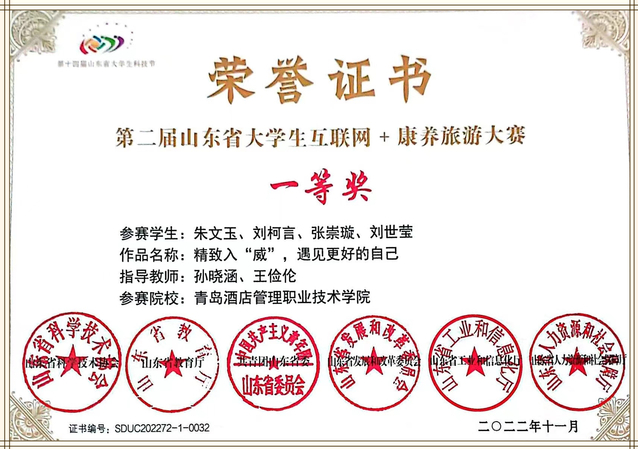 本网讯(文旅学院 孙晓涵)近日,第二届山东省大学生互联网+康养旅游大赛落下帷幕,必赢官网文旅学院学生参赛作品荣获一等奖,孙晓涵、王俭伦获优秀指导教师称号。