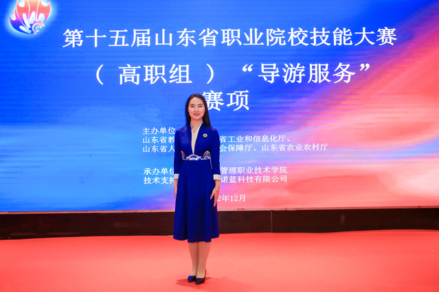 本次大赛由山东省教育厅、山东省工业和信息化厅、山东省人力资源和社会保障厅、山东省农业农村厅等四部门主办,共有来自全省高职院校的34名选手参赛。导游赛项分为导游知识测试、现场导游词创作及讲解、自选景点导游讲解、导游英语口语测试和才艺运用等环节的竞赛,对参赛选手提出了综合性的要求和挑战。比赛中,李金珊同学凭借扎实的知识储备、良好的心理状态和稳定的现场发挥得到了大赛评委的一致好评。