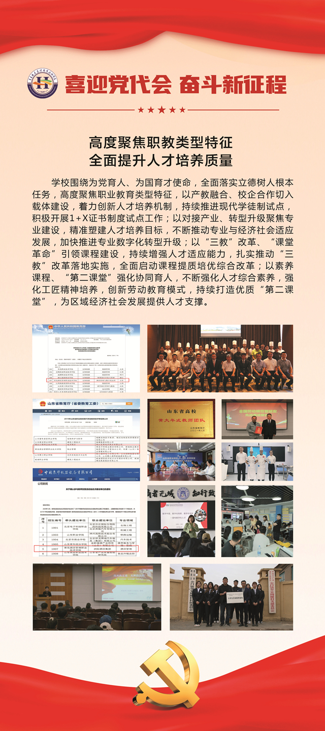 学校党委坚持以习近平新时代中国特色社会主义思想为指导,贯彻落实习近平总书记对职业教育工作的重要指示和全国职业教育大会精神,团结带领全校师生员工,坚持以党的建设为引领,落实立德树人根本任务,真抓实干、紧抓快干、埋头苦干,以高质量完成山东首批优质校建设、入选国家“双高计划”,标注学校事业发展新高度,各项工作取得了新成绩、获得了新突破、实现了新提升。