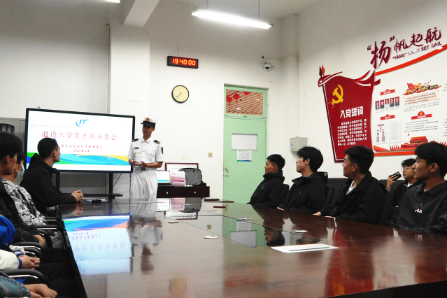 信息工程技术学院团总支举办“从军营到学校 退伍永不褪色”退役大学生士兵分享会。从海军退役复学的张源述同学分享了自己的军旅生涯,向同学们讲述了人民海军身先士卒、英勇顽强的先进事迹和严谨、坚韧的新时代军人精神。现场同学纷纷表示,将在学习和生活中发扬艰苦奋斗、无私奉献的优良作风,为全面建设社会主义现代化国家添砖加瓦。