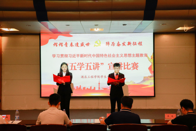 思想是行动的先导,酒店工程学院党总支牢牢把握主题教育的总要求,坚持读原著、学原文,开展形式多样的理论学习活动。创新活动形式,举办“五学五讲”党史宣讲比赛,围绕“讲战争”“讲人物”“讲会议”“讲精神”“讲英烈”五个主题,再现了中国共产党波澜壮阔的奋斗历程,思想引领厚植爱国情怀。