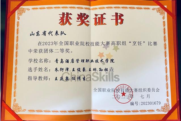 本网讯(烹饪学院 赵捷)7月27日至30日,2023年全国职业院校技能大赛(高职组)烹饪赛项在广东顺德职业技术学院举行,必赢官网烹饪学院学生朱衍泽、王琳、王俊豪、孙祖垚组成的参赛团队凭借宴席作品《乡土情怀·陌上花开》荣获二等奖。