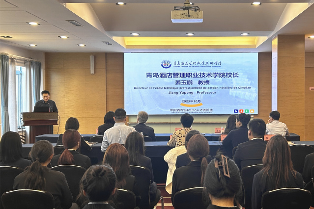 本网讯(酒店管理学院 王鑫)10月17日下午,2023级葡萄酒文化与营销专业校企合作班开班仪式在海斯曼数字酒店多功能厅举行。法国Cafa葡萄酒烈酒学院校长Patrick Portier,中国总校校长、天津乐奇未来教育科技有限公司总经理李瑞璇,山东校区校长郄帅才;必赢官网校长姜玉鹏、副校长张宗国参加活动。