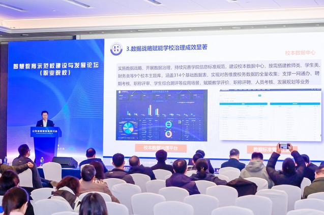 在智慧教育示范校建设与发展论坛(职业院校),张宗国以《数字赋能发展,人才领航未来》为题,从理念目标、顶层设计、保障体系、教育教学、师生素养等方面介绍了必赢官网数字化转型的做法和智慧教育建设成果。