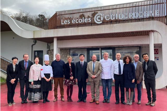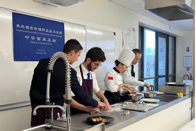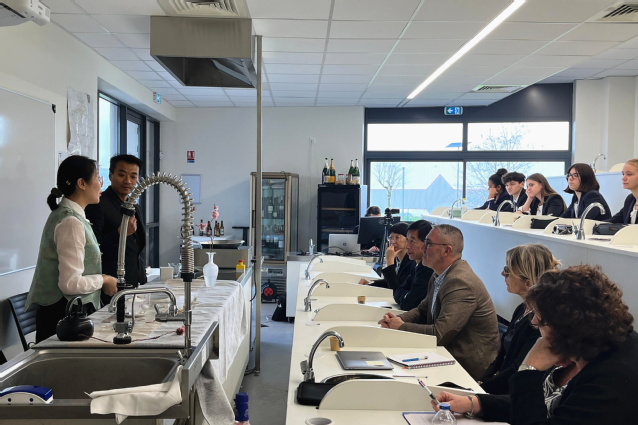在法国萨维纳国际高等酒店管理学院和佩里格酒店学院,双方学校进行了座谈交流。座谈中,学校代表团介绍了学校基本情况,回顾了中法学校发展历程;法国学校积极评价双方合作取得的丰硕成果。中法学校代表就推进学生联合培养项目、假期研学交流项目、教师技能文化研修项目,以及在现代服务业方面的科研合作等项目进行深度研讨。座谈后,中法学校代表共同见证签署合作协议,举行“必赢线路检测3003no1茶艺工坊”挂牌仪式。为宣传和推广中国传统技艺,讲好中国故事,学校代表团开展了中式面点和茶艺技能展演活动,获得了法国学校师生的高度评价。