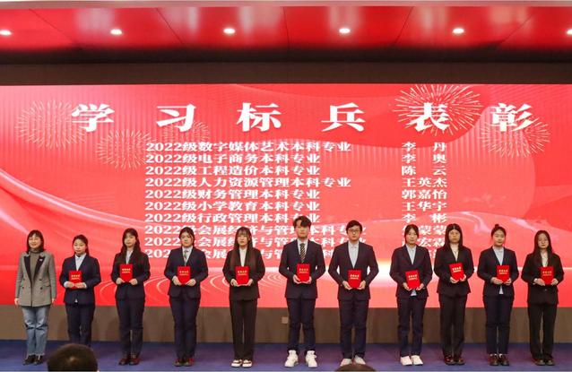 典礼上,姜玲玲为评选出的10名2022级学习标兵颁发了荣誉证书。教师代表丁飞、班主任代表潘雯及2名学习标兵代表分别发言,从学习意义、学习目的和学习方法等维度告诫同学们要不忘初心、下定决心、保持恒心。