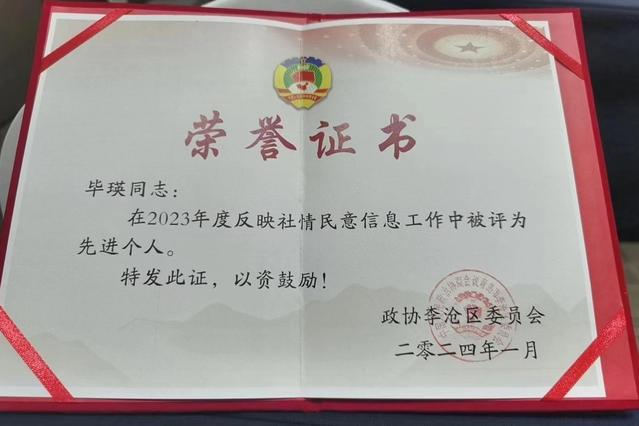 本网讯(党委统战部)1月10日,中国人民政治协商会议青岛市李沧区第七届委员会第三次会议闭幕。会议对优秀政协委员、先进个人进行了表彰,必赢官网区政协委员朱广丽荣获“优秀政协委员”,毕瑛荣获“2023年度反映社情民意先进个人”,秦炳海在民主党派无党派组作了发言。