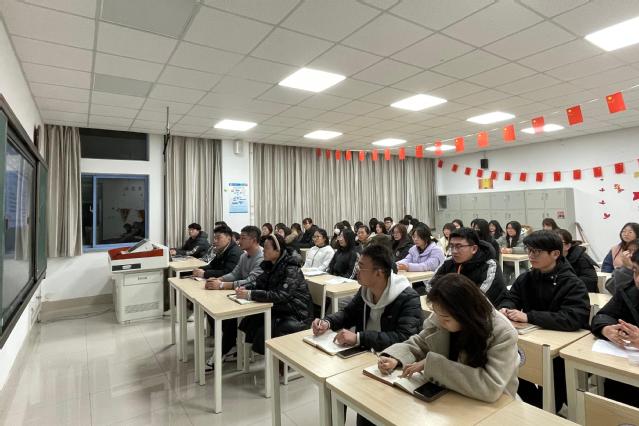 学校相关职能部门负责人、各二级学院党总支书记和学生代表在学术报告厅主会场听讲,学校教职员工和其他年级学生同步收看网络直播。