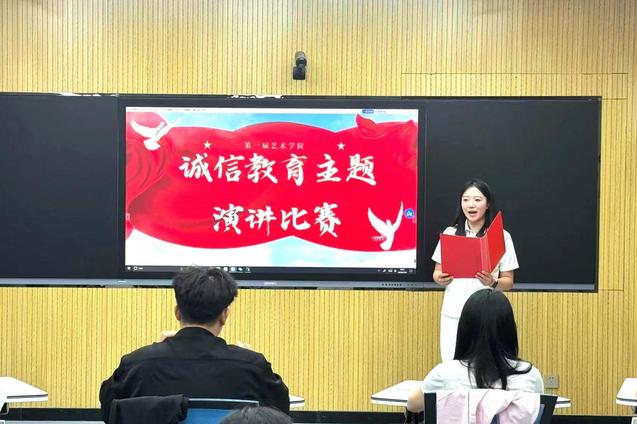 诚信是人生的作业本,是青春的测试题。5月26日,艺术学院开展“诚为本 信为身”诚信主题教育演讲比赛。比赛中,选手们从不同角度出发,用质朴语言、切身感受、饱满热情和蓬勃精神状态,结合专业实际、生活经历、经典诚信故事等,演绎诚信的内涵和价值,强调诚信在人际交往中的重要性,分析诚信缺失所带来的负面影响,深入探讨了诚信对于个人职业发展的重要性。这次比赛不仅展示了选手们的才华和实力,更传递了诚信的价值观,对于推动校园诚信文化建设具有积极意义。