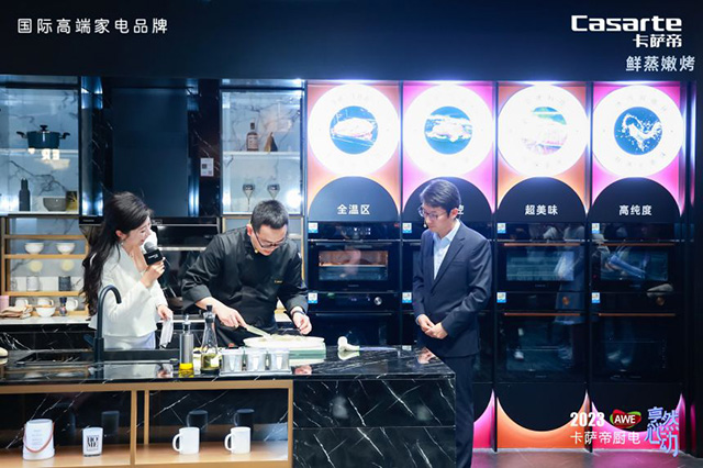 学校研发团队为海尔旗下高端品牌卡萨帝嵌入式蒸烤箱设备研发的AI智慧菜谱,精准匹配了其蒸烤箱产品智能烹饪程序,解决了传统厨房电器烹饪效果差,实用度低等用户居家烹饪的痛点。这一重要成果在上海AWE家电展正式发布,助力海尔厨电产业逆势增长,2023年海尔厨电全球销量超过400亿元。在2023年“双十一”期间,海尔嵌入式蒸烤一体机等智能厨电产品持续释放增长空间,同比销售增幅达293%。与此同时,技术服务团队将这一成果反哺日常实践教学,将其转化为课堂案例、实践作业、考核内容等,截至目前,学校师生为海尔智家厨电产业共研发了200余道智慧菜谱。