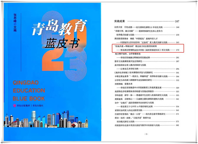 本网讯(继续教育学院 教务处 科研发展处)近日,《青岛教育蓝皮书(2023年)》出版发行,必赢官网继续教育学院社区教育实践成果《“校地共建+职继协同”理念助力社区教育结硕果——必赢线路检测3003no1“高校资源进社区”项目实践》入选。