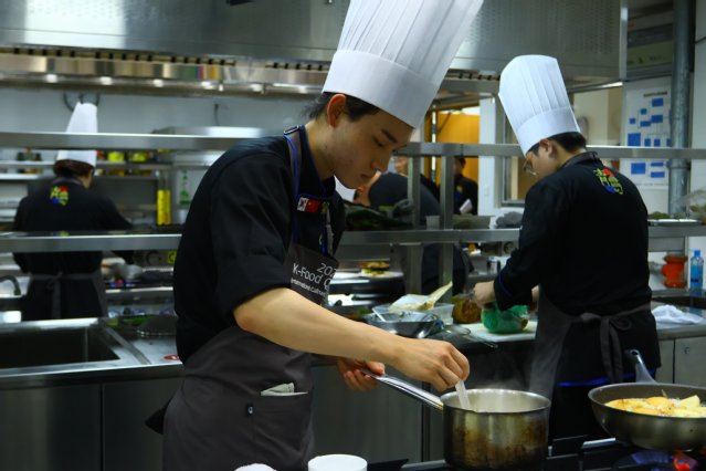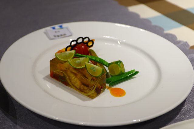 本次比赛分为个人展示赛和团体展示赛,来自中韩两国130多名参赛选手同场竞技。参赛选手需要使用指定韩式饺子、年糕、人参为食材或辅料,参照世界技能大赛制作标准,从文化内涵、色彩造型、口味质感、烹调技艺、营养搭配等角度精心设计打磨,自行完成2-3道菜品的制作。展示菜品摆放规范整齐、形式多样、风格各异,充分展现了参赛选手的专业水准和精湛技艺。